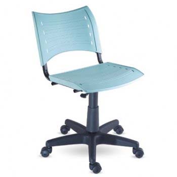 Cadeira giratória estrutura metálica em capa preta plástica, assento e encosto em polipropileno azul.