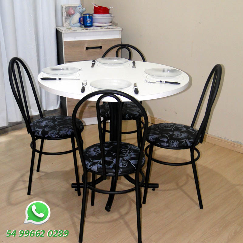 Apresentamos o conjunto perfeito de mesa e cadeiras, projetado especialmente para ambientes compactos e lofts. Com design moderno e linhas arredondadas, este conjunto se adapta perfeitamente a cozinhas pequenas e salas de estar.