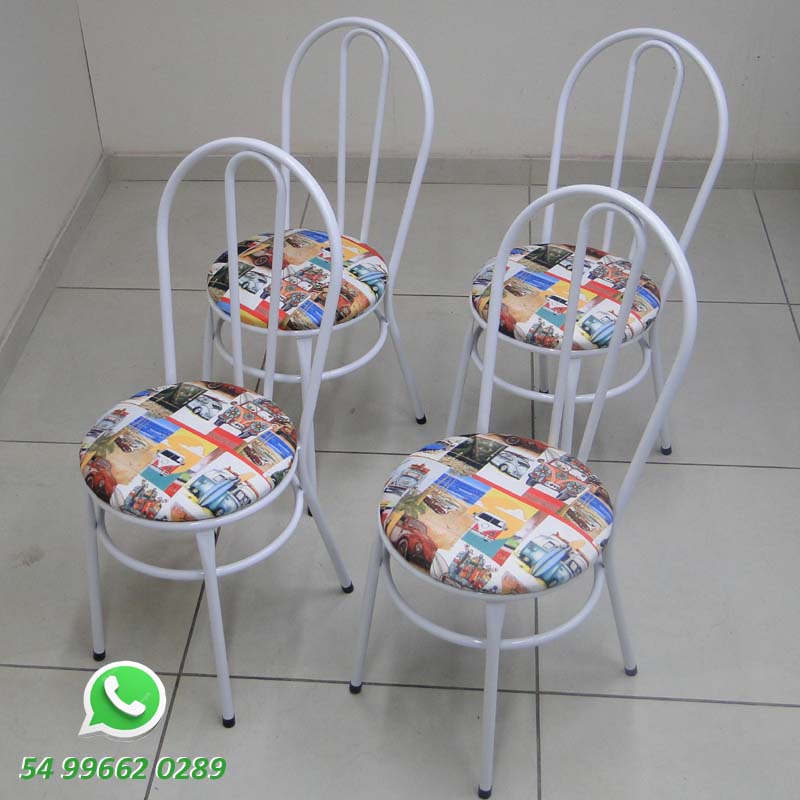 Cadeira de cozinha em estrutura tubular, com revestimento e proteção em pintura epóxi branca ou preta. Construção da estrutura em tubo de aço carbono 3/4" x 1,2 mm, conferindo confiabilidade na solda e reforço estrutural entre as pernas para maior estabilidade.