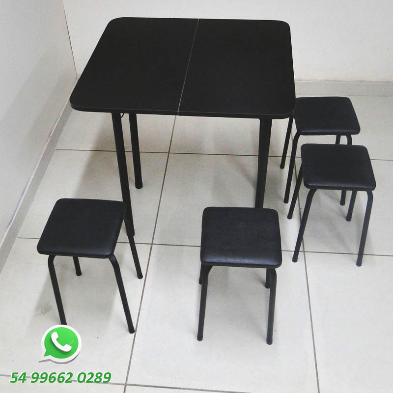 Mesinha dobrável preta com banquinhos preta para cozinha